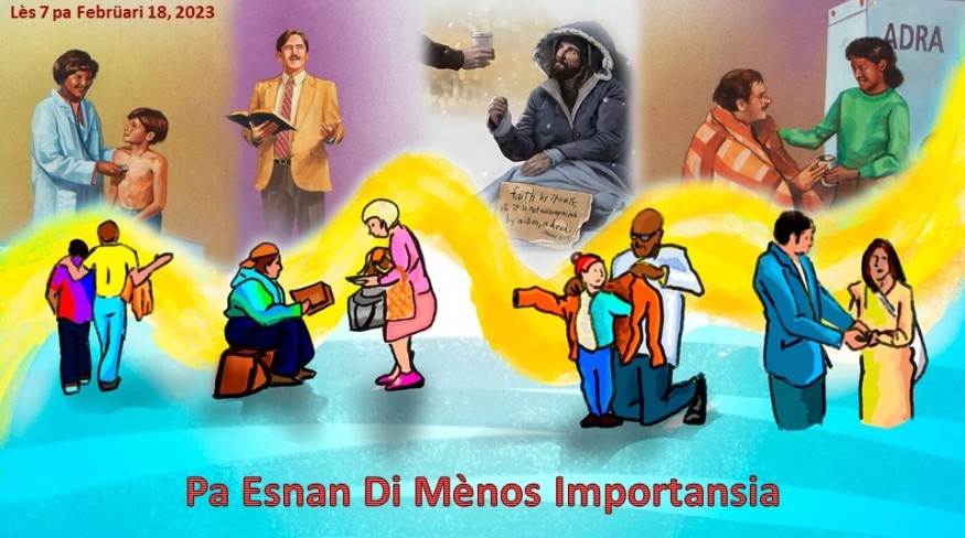 Teksto di Memoria: "Anto e Rei lo bisa esnan na Su man drechi: 'Bin, boso ku ta bendishoná di Mi Tata, eredá e reino ku ta prepará pa boso desde e fundashon di mundu."(Mateo 25:34)